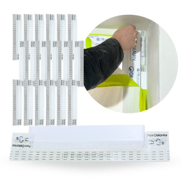 Zwykła taśma malarska nie zawsze dobrze przylega do zawiasów, często się odkleja i zostawia ślady farby. Pan Osłonka® to profesjonalne rozwiązanie, które zapewnia szybszą, czystszą i dokładniejszą pracę przy malowaniu okien. Dzięki przemyślanej konstrukcji i kątownikowemu dopasowaniu, osłonka idealnie przylega do zawiasu, chroniąc go przed zachlapaniem i brudem.
