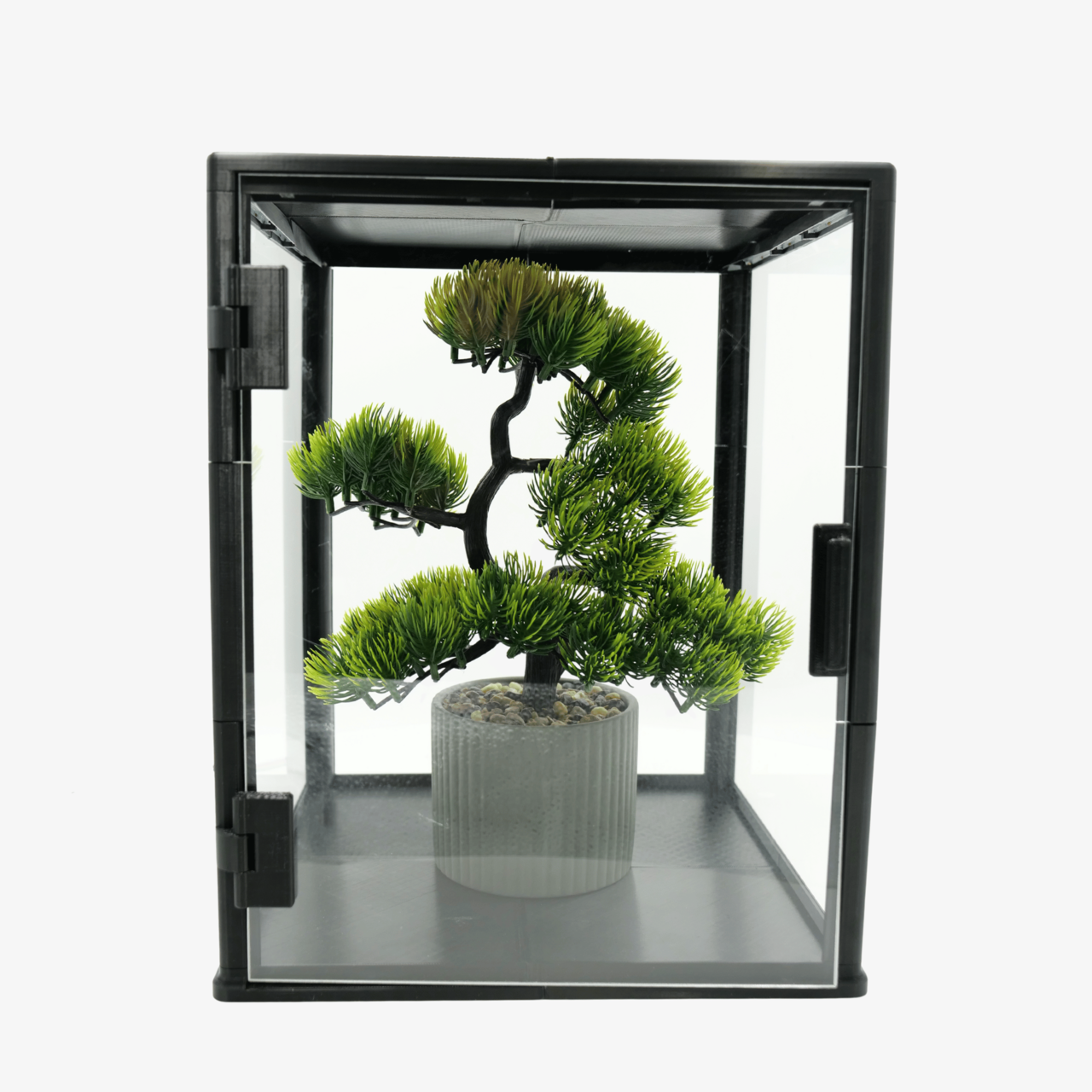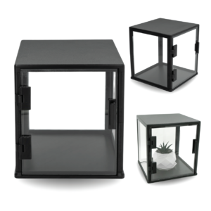 Witryna o wymiarach 25×25×30 cm została zaprojektowana tak, by zapewnić dodatkową wysokość tam, gdzie klasyczne gabloty nie wystarczają. To świetne rozwiązanie dla: