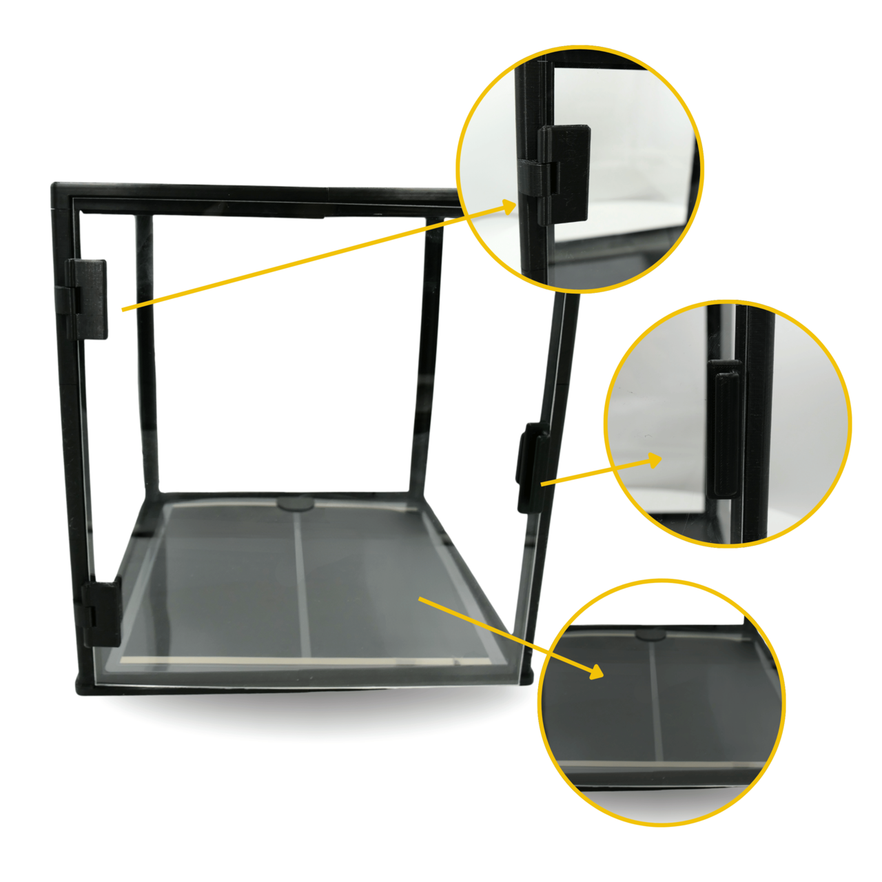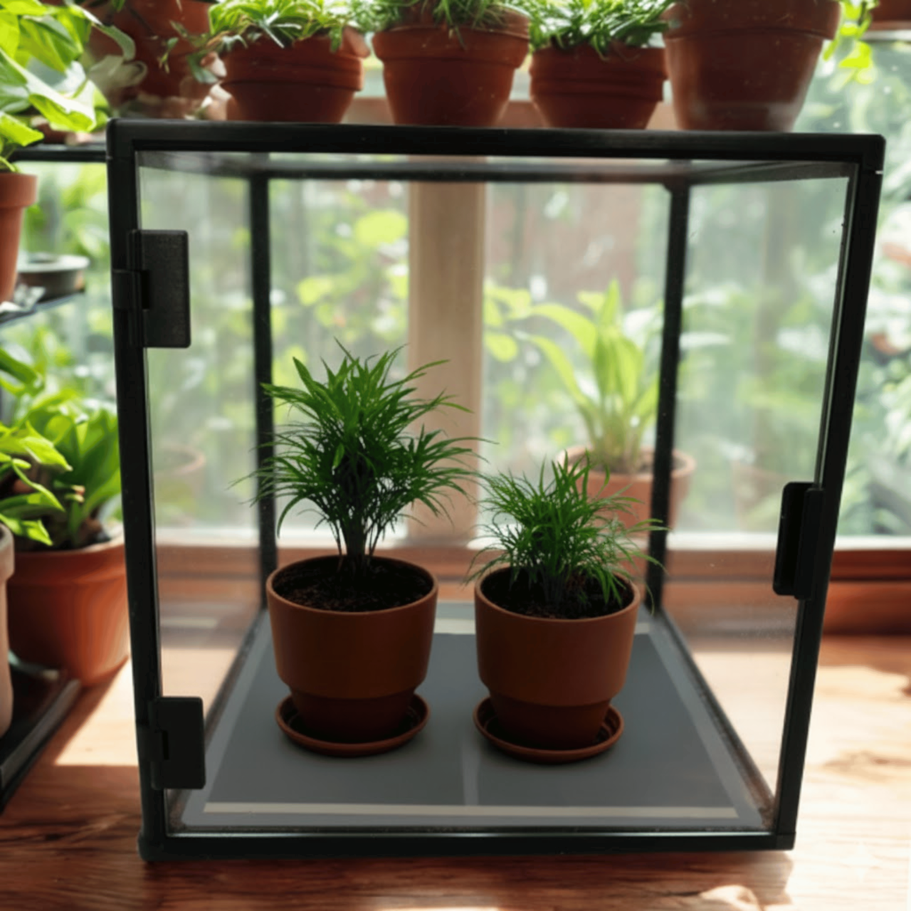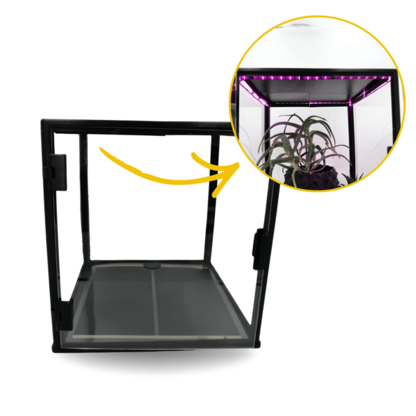 Kwadratowa gablota 30×30×30 cm stworzona specjalnie z myślą o roślinach egzotycznych, sukulentach i wymagających okazach kolekcjonerskich. To kompaktowa szklarnia z oświetleniem grow-light i matą grzewczą, która pomaga stworzyć roślinom stabilne, sprzyjające warunki do wzrostu – w estetycznej, kolekcjonerskiej formie.