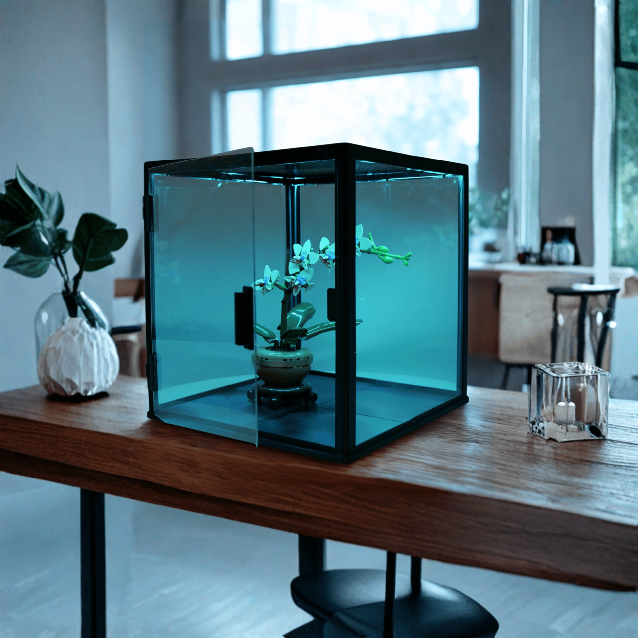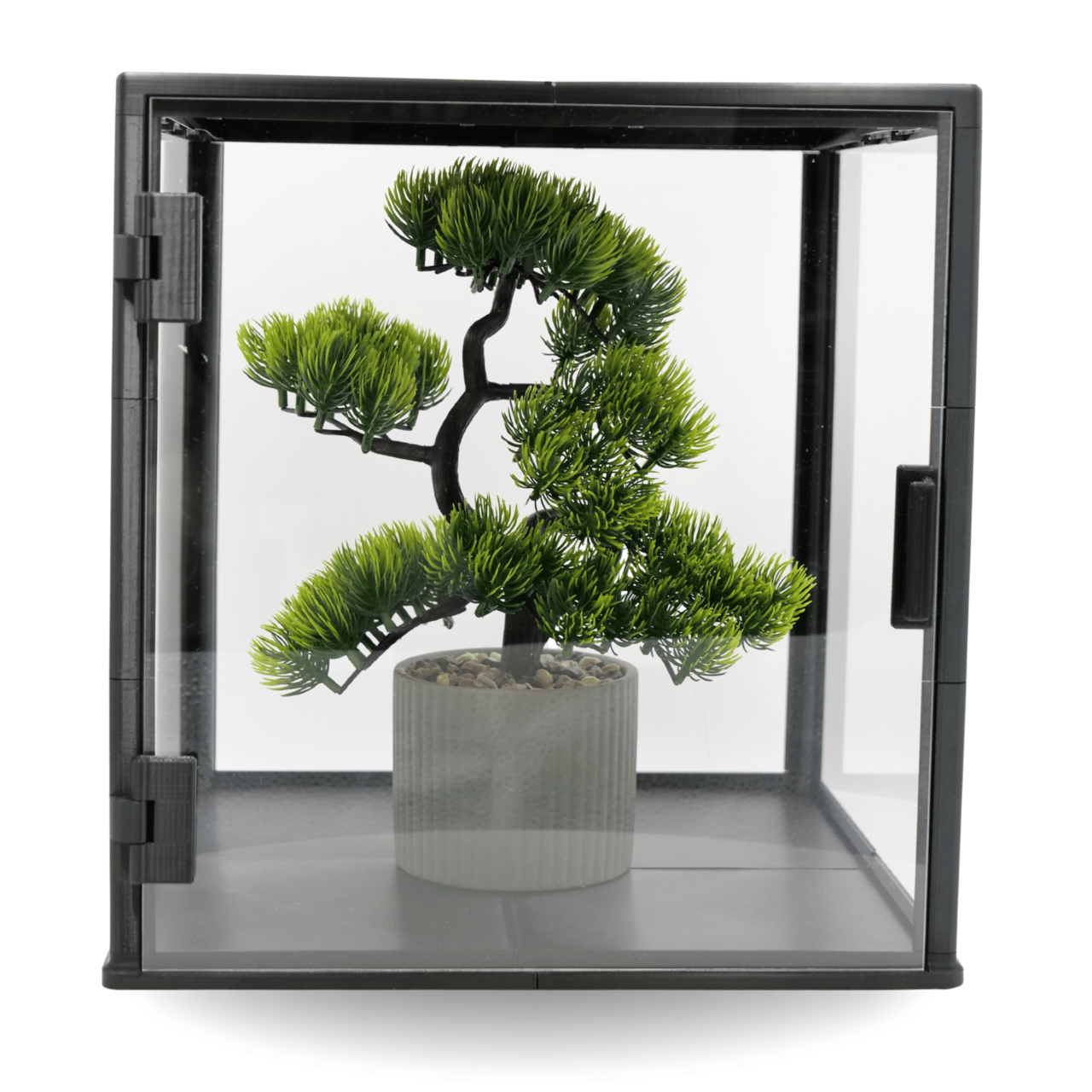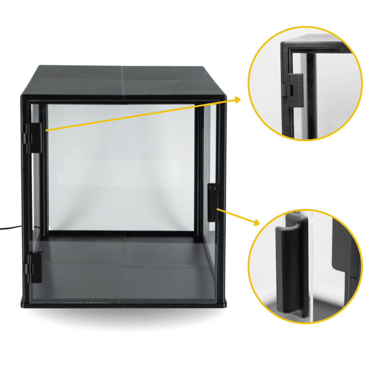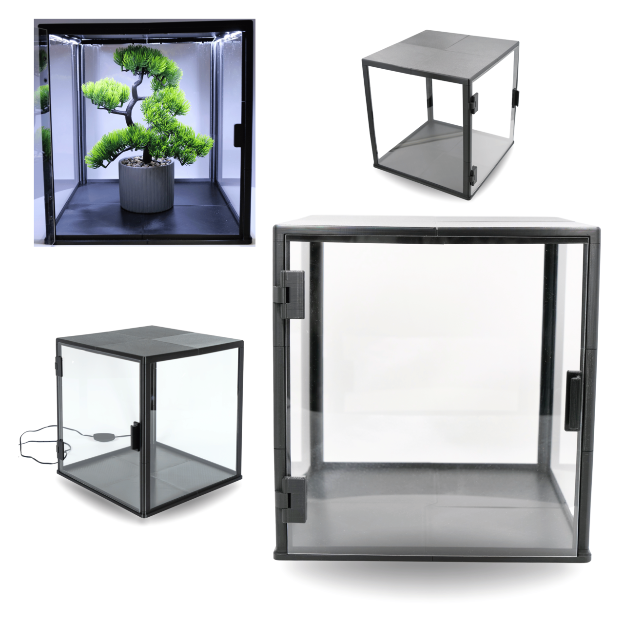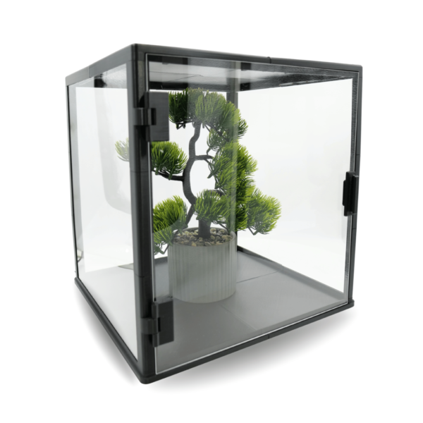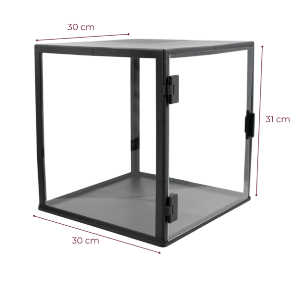 Kwadratowa konstrukcja o wymiarach 300×300×300 mm zapewnia bardzo dużo miejsca, dzięki czemu gablota sprawdzi się przy:
