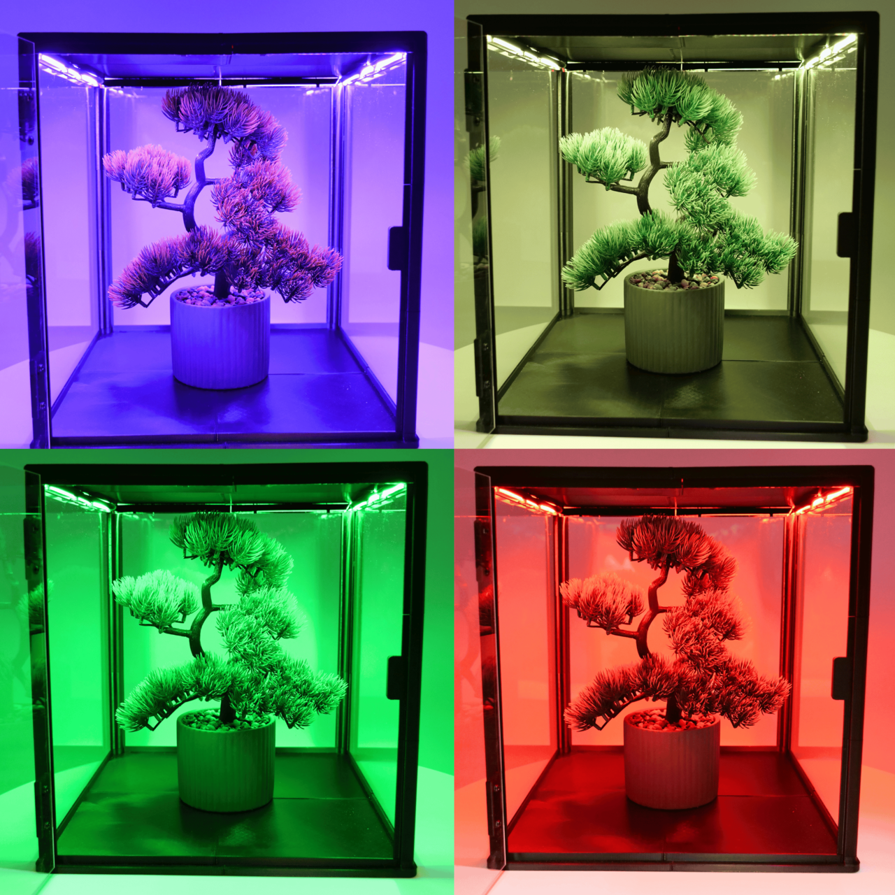 Witryna wyposażona jest w mocne, gęsto rozmieszczone diody LED, które równomiernie oświetlają cały obszar 30×30 cm.