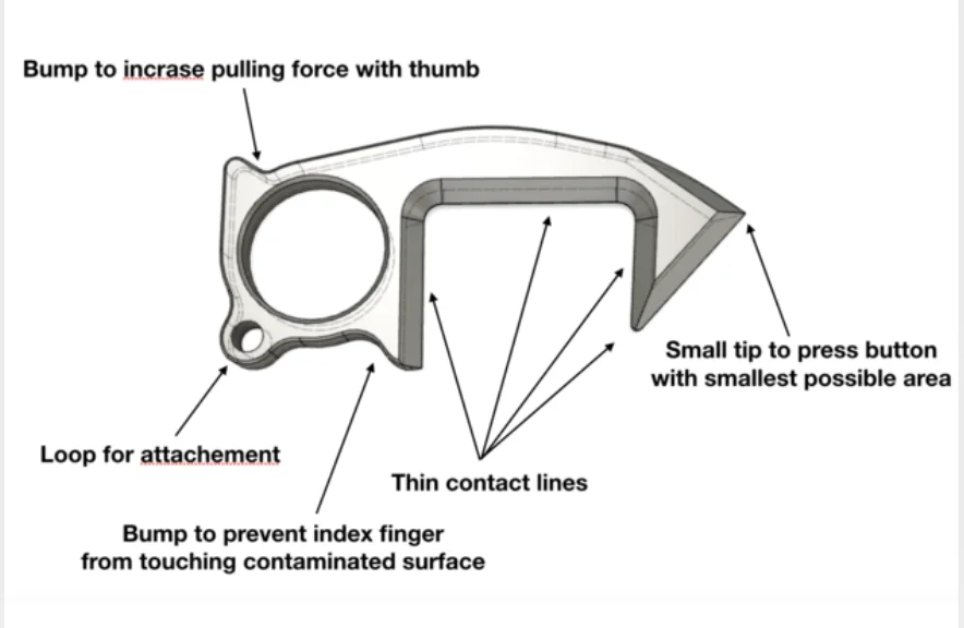 W walce z wirusem stanęli między innymi drukarze 3D, nie ograniczyli się oni tylko do elementów masek ochronnych czy części do respiratorów. W czasie największej ilości zakażeń musieliśmy zaakceptować także ograniczanie kontaktu np. osobistego jak dotyk i dezynfekcję miejsc najczęściej narażonych na kontakt ze skórą. W tę potrzebę wpasowali się Spectrum Filaments oraz  Materialise tworząc specjalny uchwyt na klamki do otwierania drzwi bez użycia rąk. Jeszcze lepiej zrobił to Martin Stiober z wiedeńskiego Uniwersytetu Medycznego. Jego „Safegrabber” to uniwersalny hak do otwierania drzwi, zapalania światła czy służący jako wieszak na przedmioty.